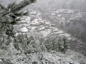 That village, sheltered by mountains and flanked by pine and leafy chestnut trees, awoke white and cold, giving that place, on that morning, a magical vision of the most beautiful fairy tale.